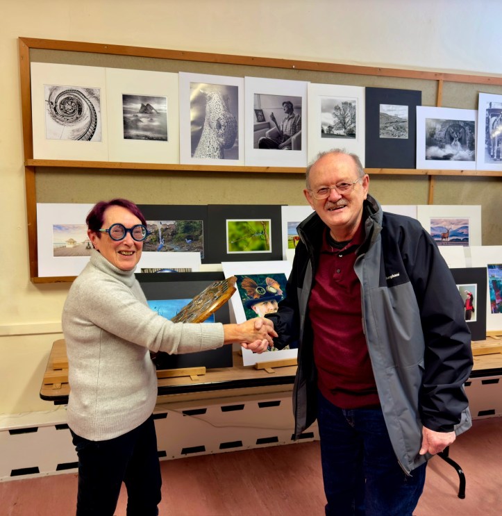 The trophy was presented by Laine Baker, president of Alnwick and District Camera Club, to Gordon Harthill from Ashington Camera Club.
