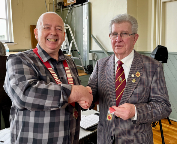 Gerald’s first duty as President was to present outgoing President Alan Wilson with a Past President badge of honour in recognition of his service as NCPF President.